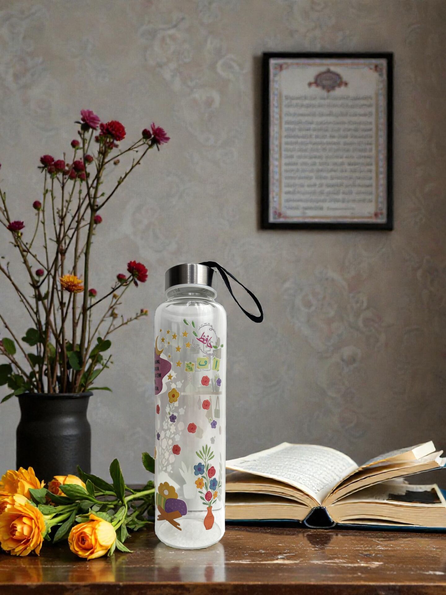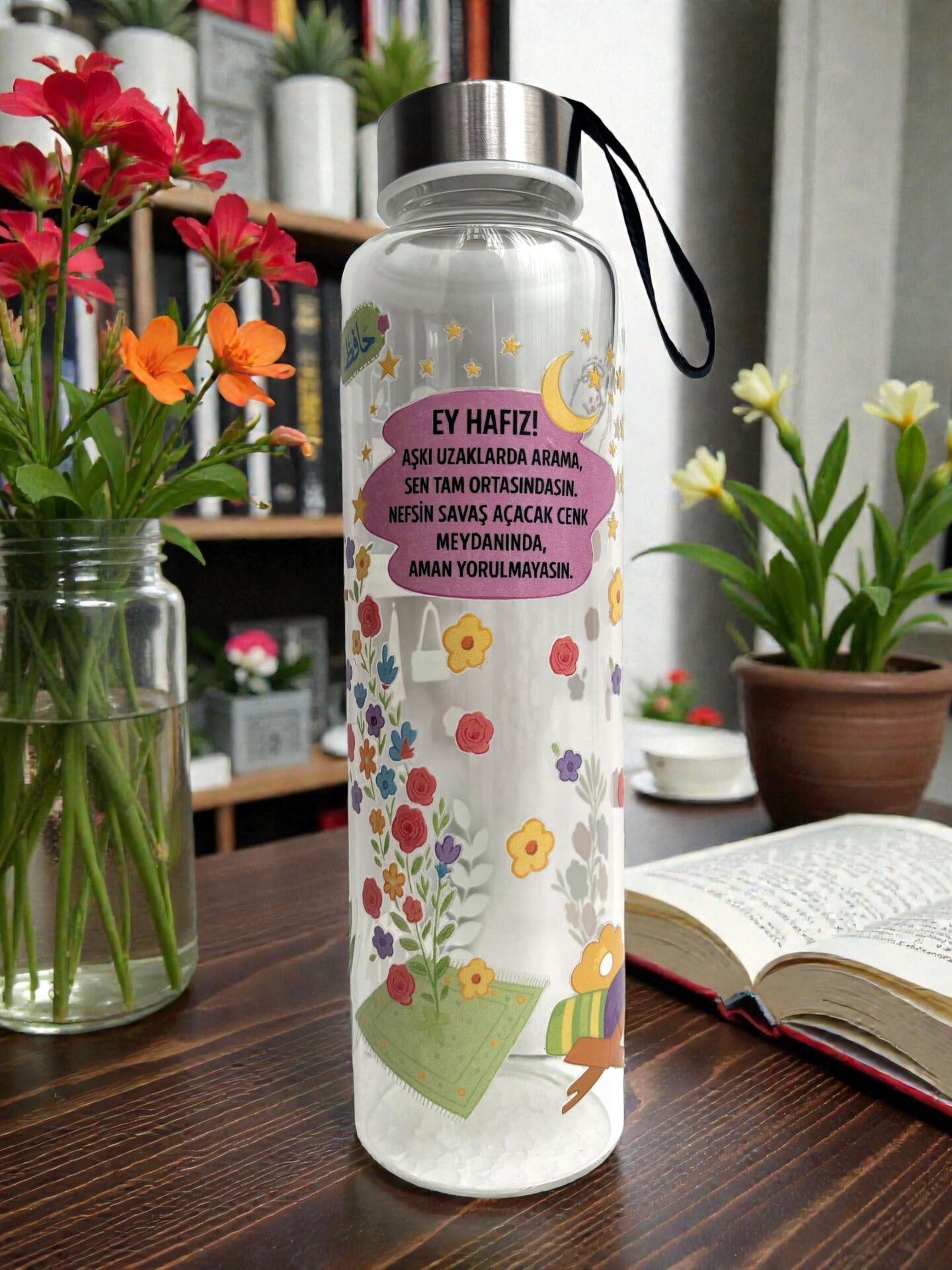 Hafızlık talebeleri için hazırladığımız bu özel Cam Şişe serisinin tasarımları özel olarak çalışılmıştır. Borosilikat camdan üretilmiş cam şişelerimizi her yerde rahatlıkla sıcak soğuk farketmeksizin tüm içecekler için kullanabilirsiniz. Özel siyah kılıfıyla her yerde yanınızda rahatlıkla taşıyabilirsiniz.