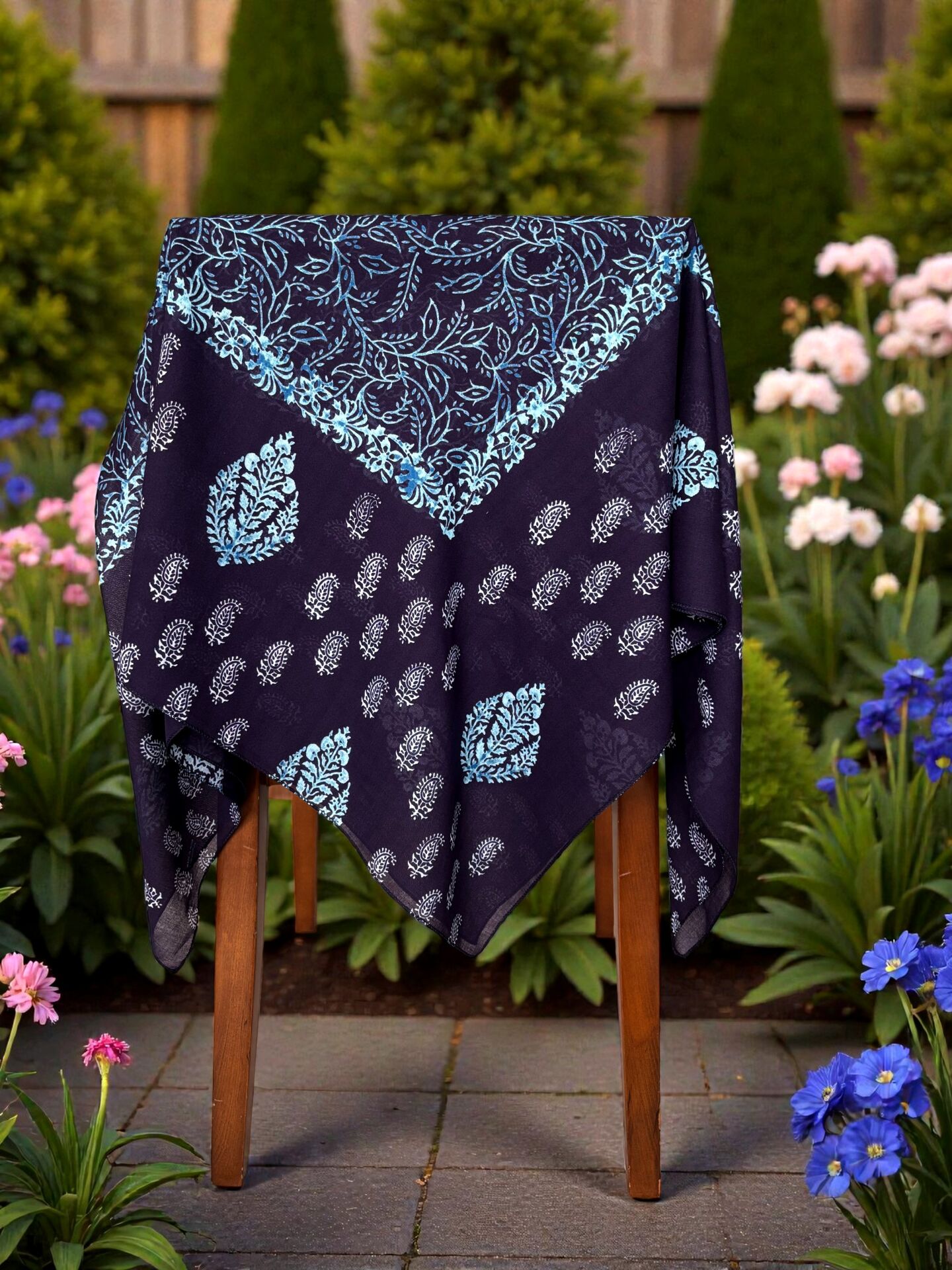 Desenli %100 Pamuk Kare Lacivert Mavi