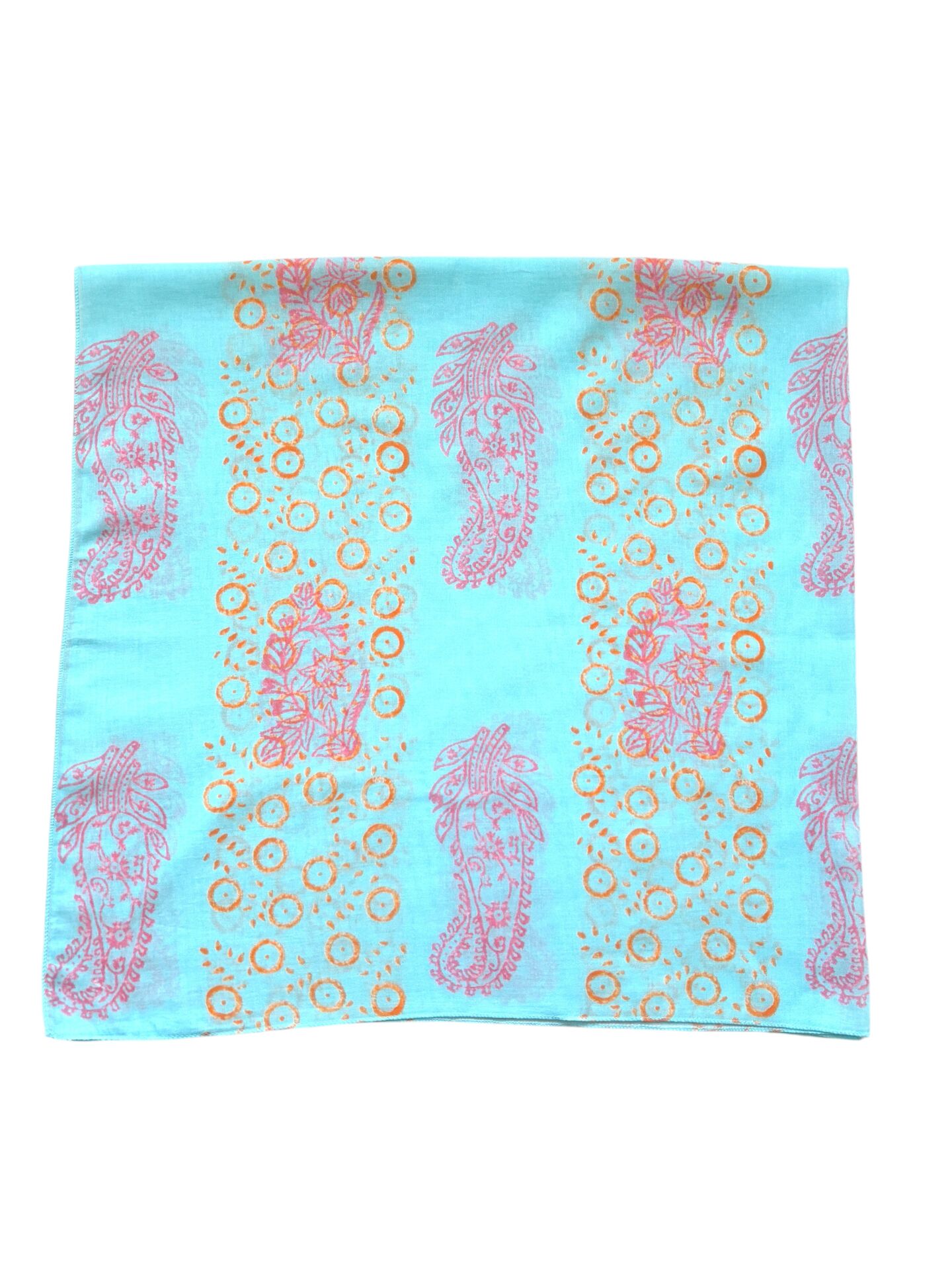 Desenli %100 Pamuk Kare Mavi Pembe Turuncu