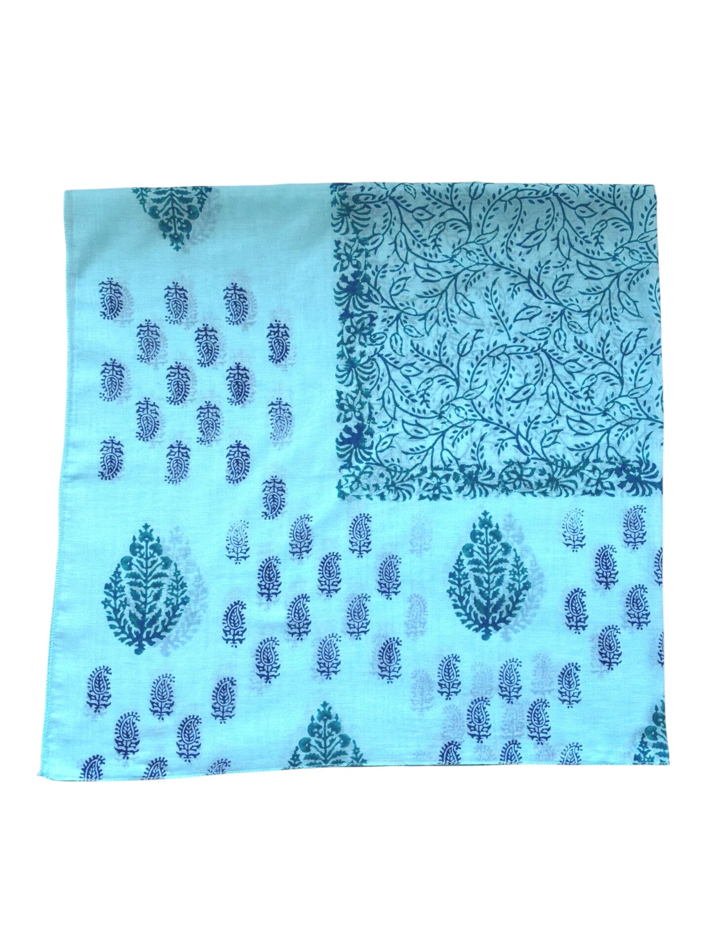 Desenli %100 Pamuk Kare Mavi Yeşil