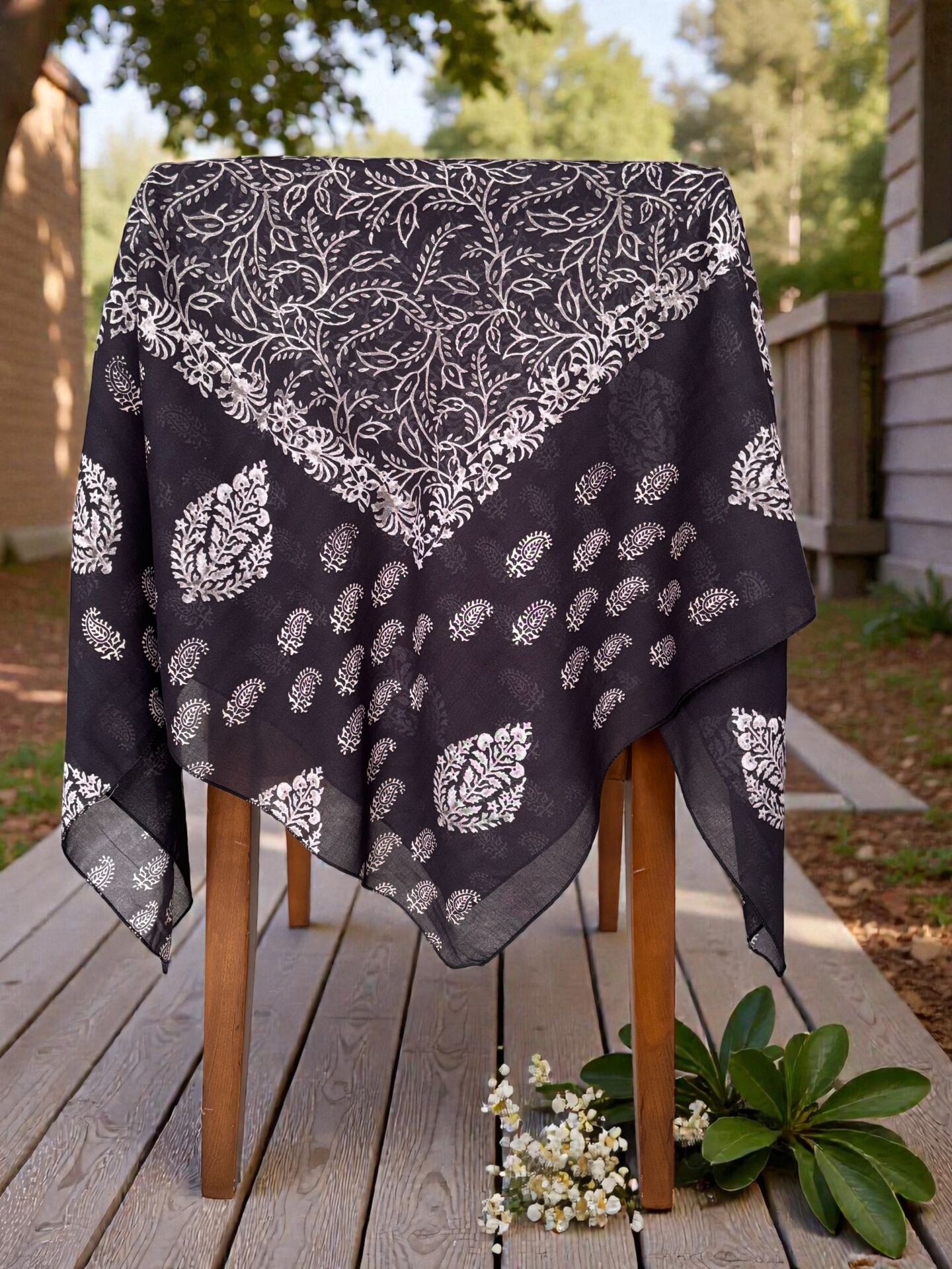 Desenli %100 Pamuk Kare Siyah Krem