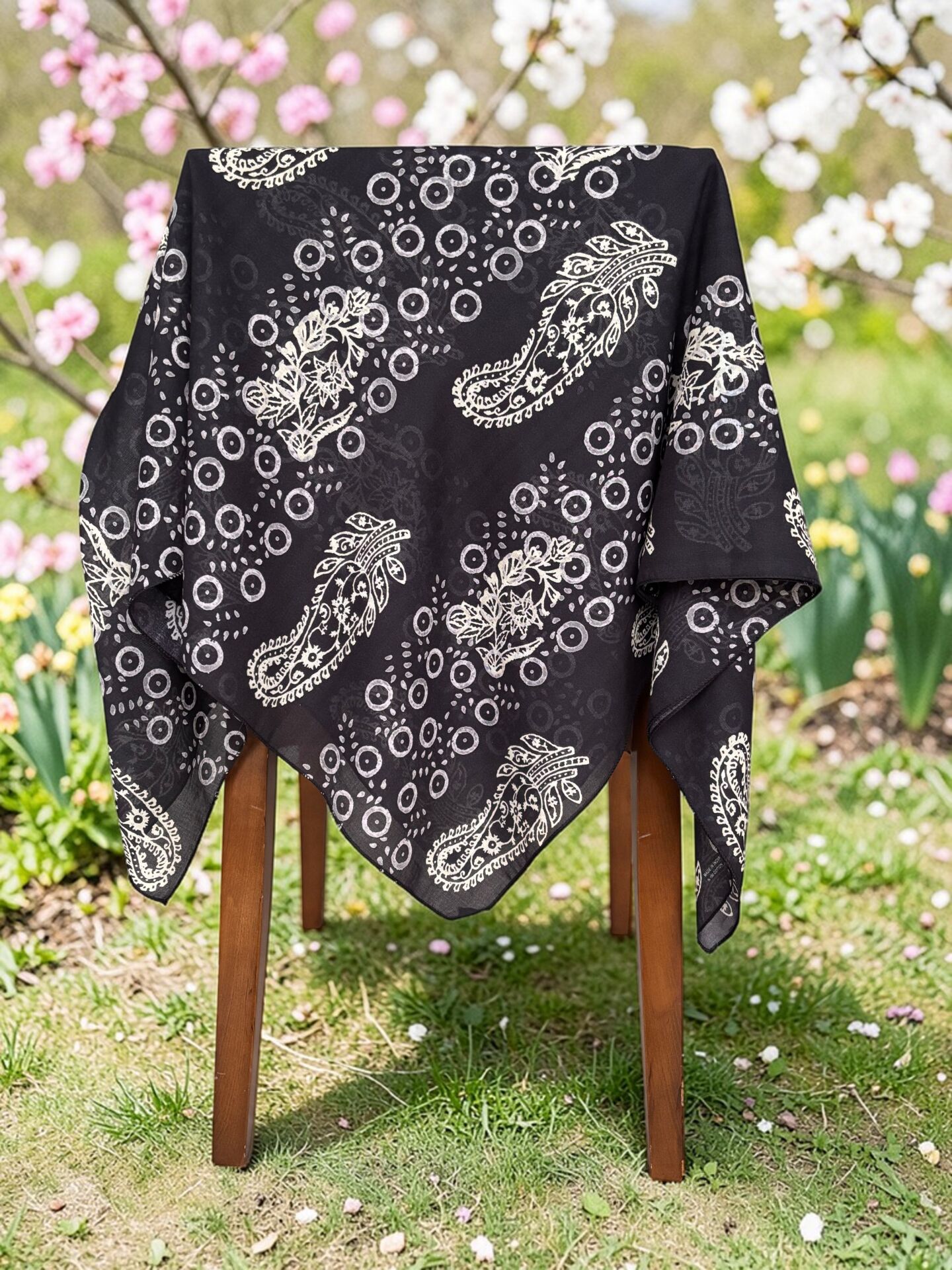 Desenli %100 Pamuk Kare Siyah Krem Açık Sarı