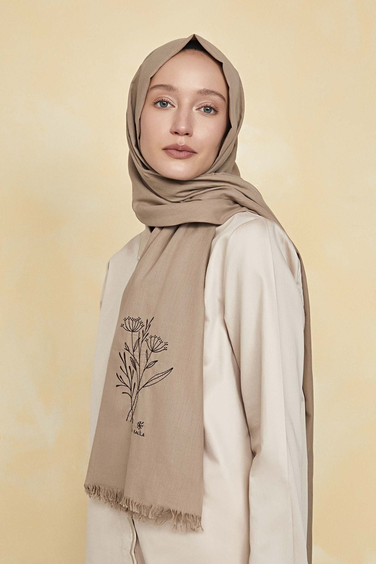 Düş Peşine Doğa %100 Pamuk Şal Vizon (NAKIŞLI)