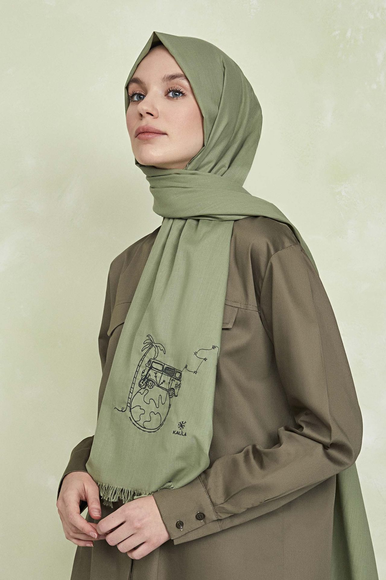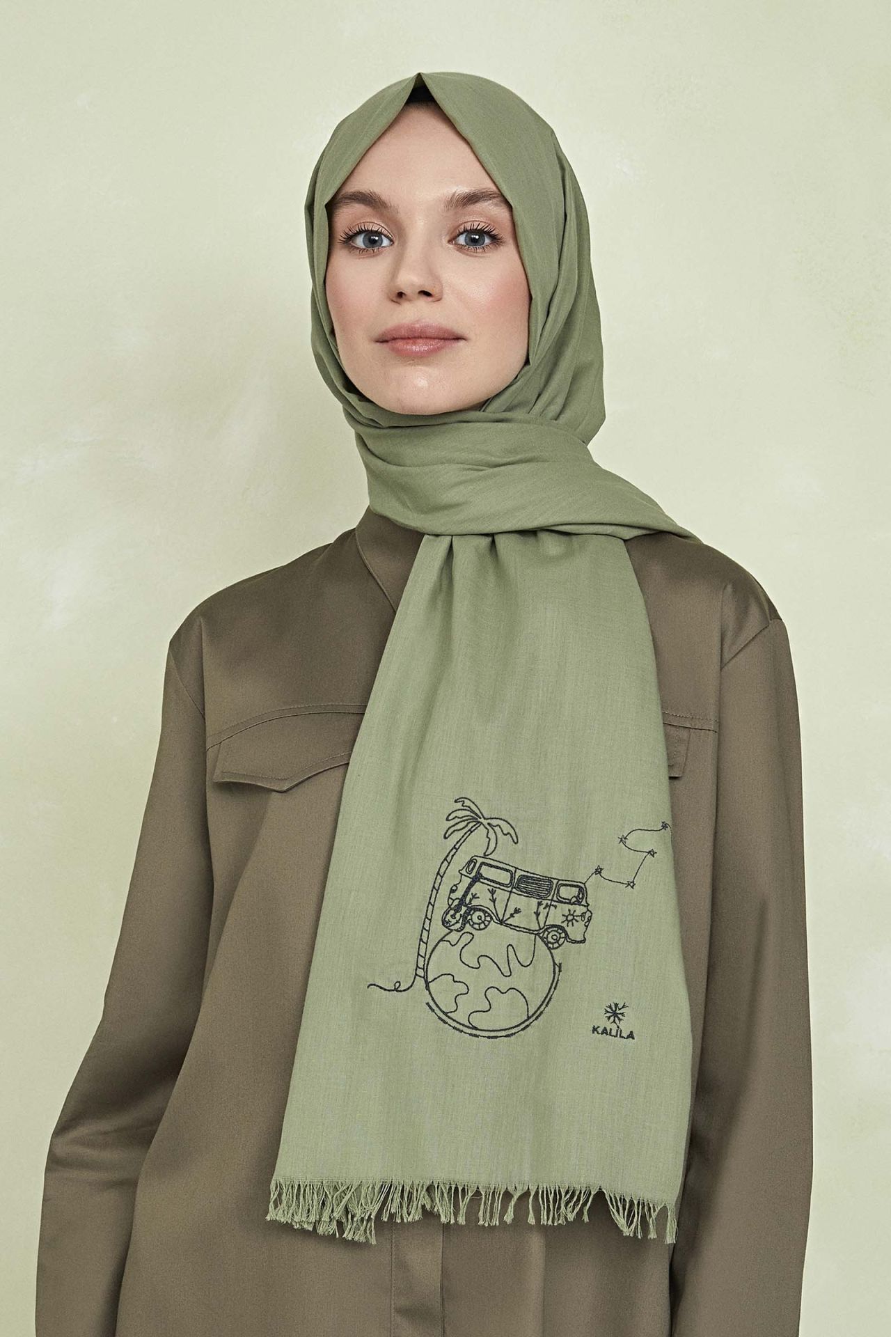 Düş Peşine Seyahat %100 Pamuk Şal Yeşil (NAKIŞLI) Düş Peşine Seyahat 0 Pamuk Şal Yeşil (NAKIŞLI) Seyahat Kalila markasının özel tasarım olarak hazırladığı \Düş Peşine\ Koleksiyonunun bir parçasıdır. \Düş Peşine Hayalin\ kategorisinde Seyahat teması ile üretildi. Geleneksel nakış sanatını, modern ve T55