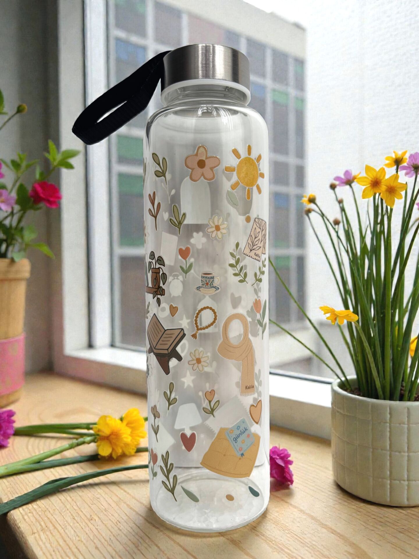 Hafızlık talebeleri ve manevi hediye arayışında olanlar için hazırladığımız bu özel Cam Şişe serisinin tasarımları özel olarak çalışılmıştır. Borosilikat camdan üretilmiş cam şişelerimizi her yerde rahatlıkla sıcak soğuk farketmeksizin tüm içecekler için kullanabilirsiniz. Özel siyah kılıfıyla her yerde yanınızda rahatlıkla taşıyabilirsiniz.