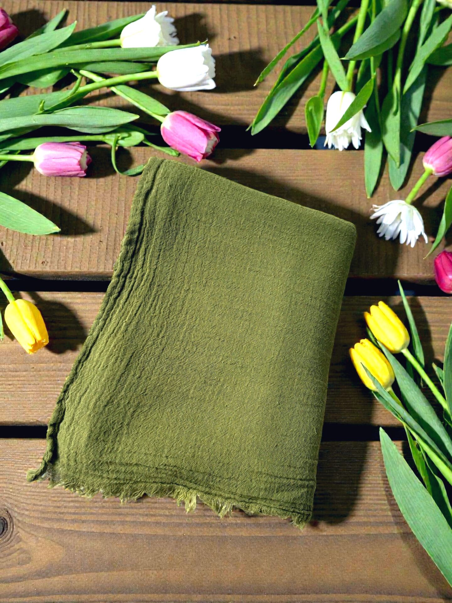 Naura Saf Pamuk Şal Zeytin Yeşili (%100 Pamuk)