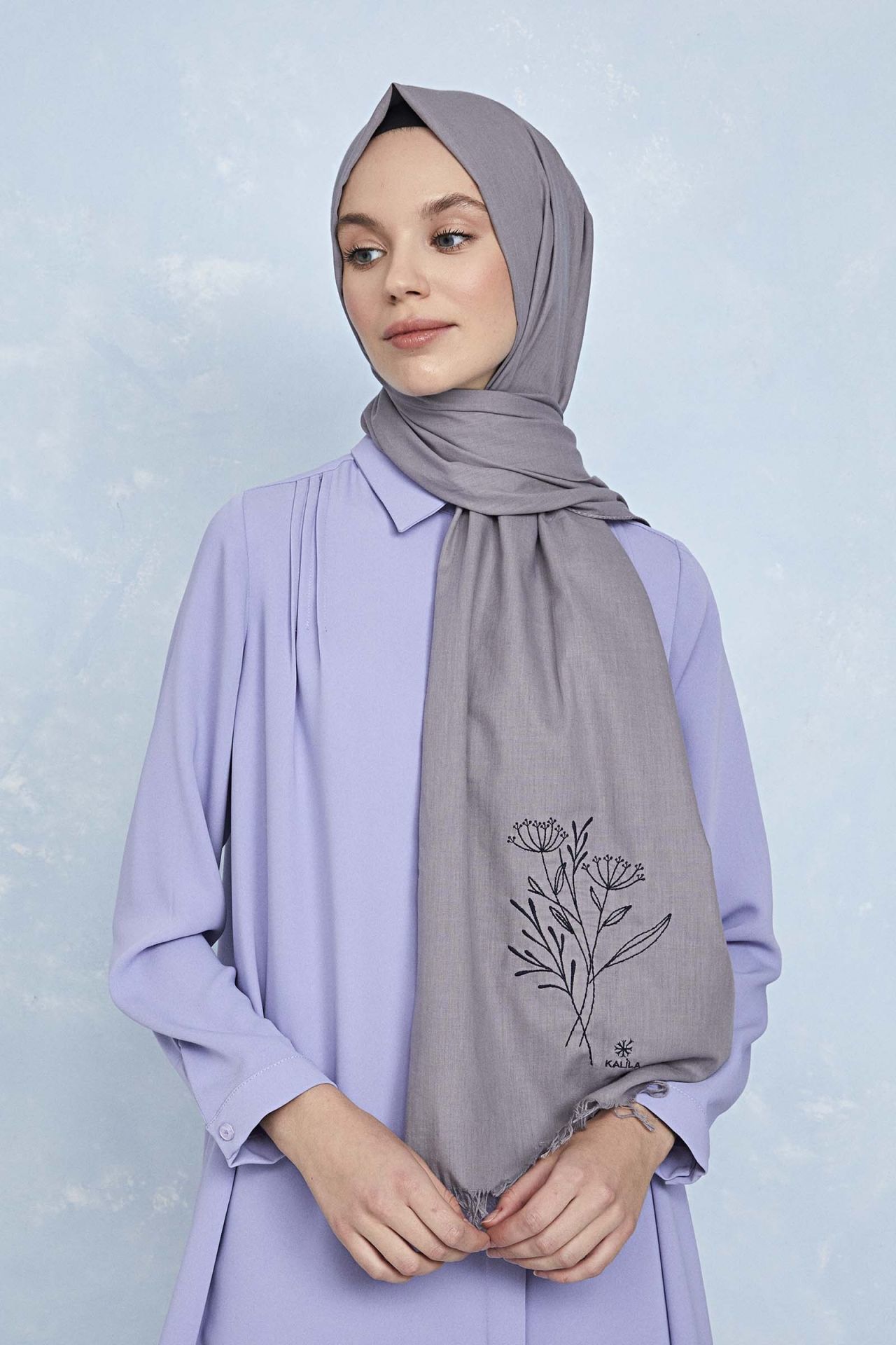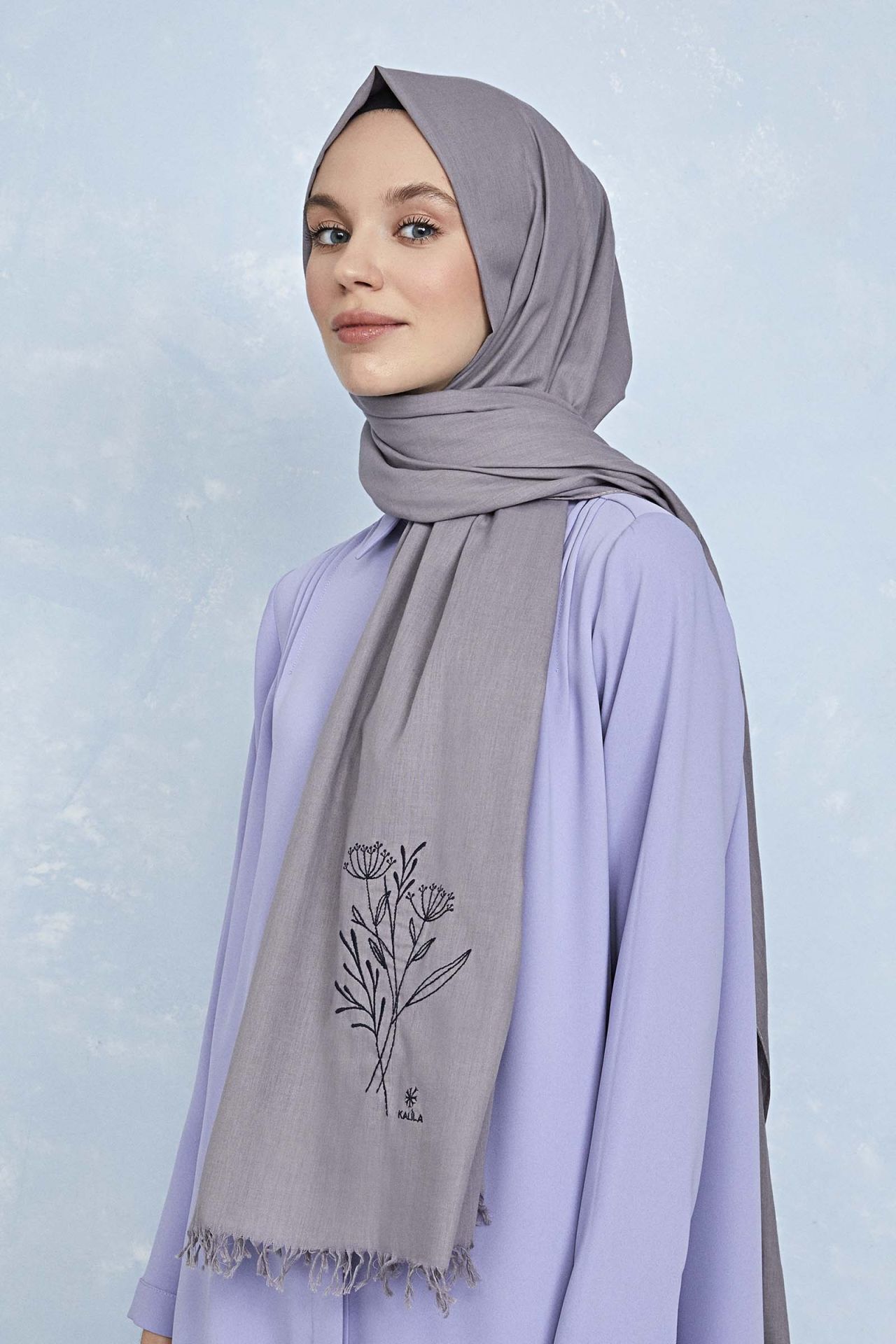 OUTLET Düş Peşine Doğa %100 Pamuk Şal Gri (NAKIŞLI)