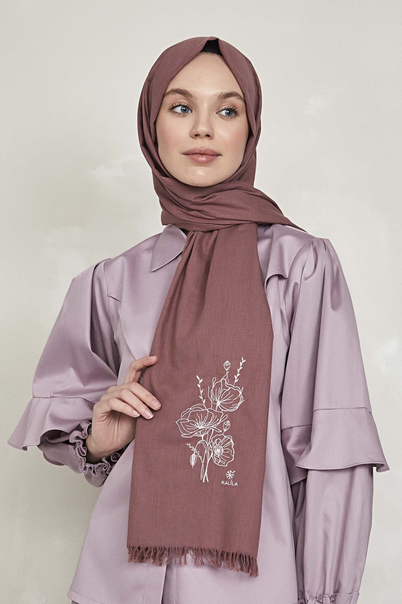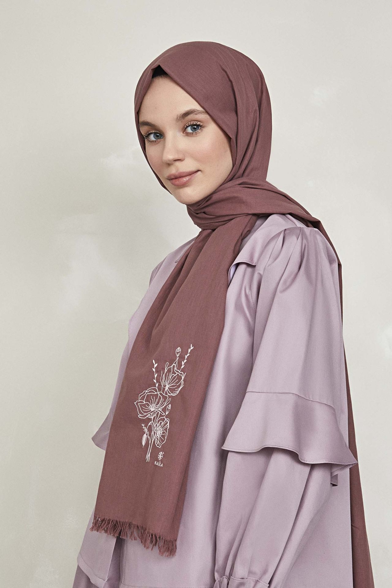 Outlet Düş Peşine Doğa Gelincik %100 Pamuk Şal Gül Kurusu (NAKIŞLI)