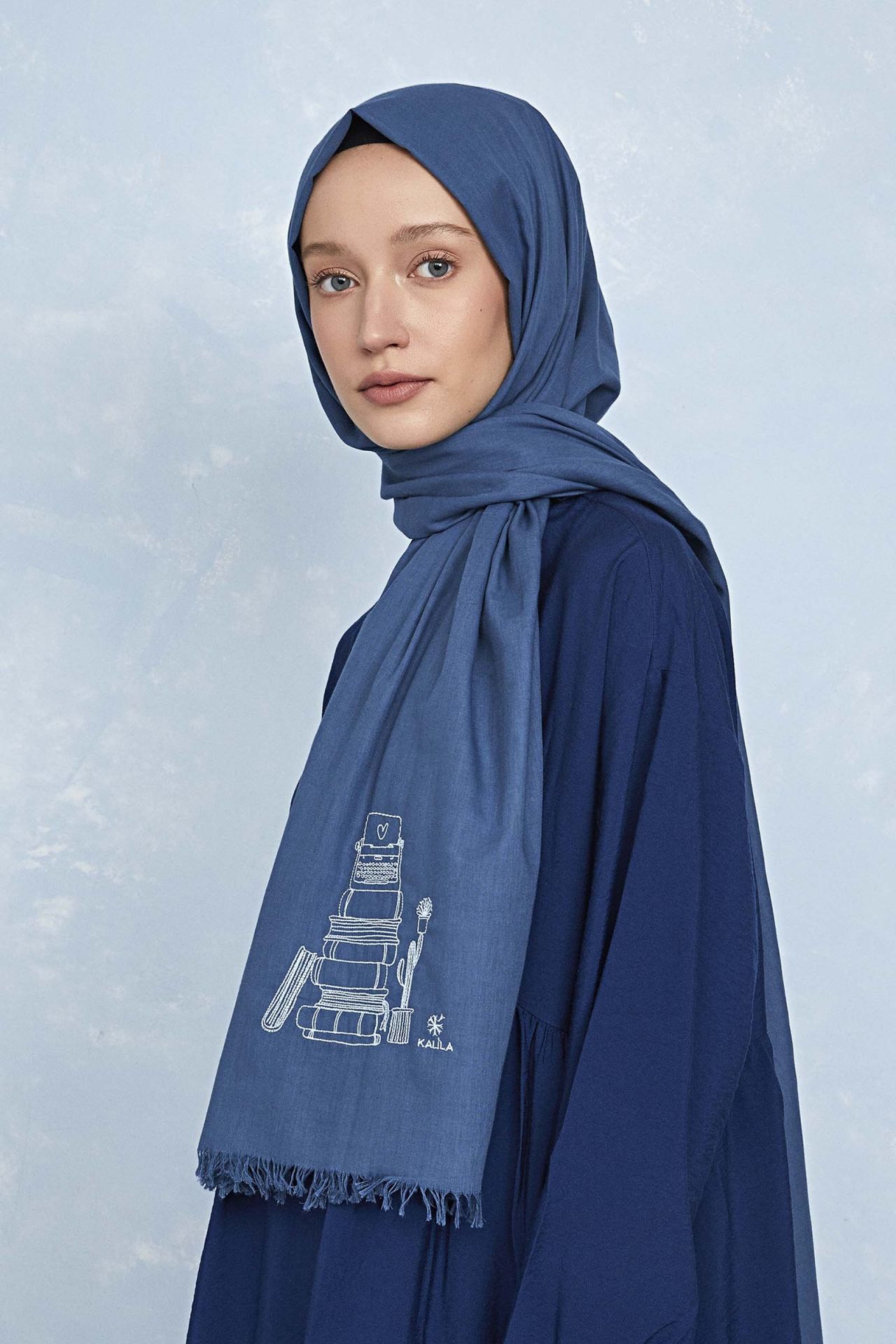 Kalila markasının özel tasarım olarak hazırladığı "Düş Peşine" Koleksiyonunun bir parçasıdır. "Düş Peşine Hayalin" kategorisinde Kariyer teması ile üretildi. Geleneksel nakış sanatını, modern ve minimal tasarımlarla yeniden yorumladık. Şal üzerine işlenen arkadaşlık temalı desenin illüstrasyonu, Kalila markasına özel olarak çizildi. Sonrasında şal üzerine ince ince nakış olarak işlendi. Şal kumaşının üretiminde %100 pamuk iplikler kullanıldı ve özel olarak dokundu. Yenilikçi üretim tekniğiyle pamuk kumaşa ipeksi görünüm ve doku verildi. Şalı elinize aldığınızda bu parlaklığı farkedecek, dokunduğunuzda ise dokusundaki pürüzsüzlüğü hissedeceksiniz. Böylece hem pamuk şalın rahatlığını yaşayacak hem de şıklığınıza şıklık katacaksınız.