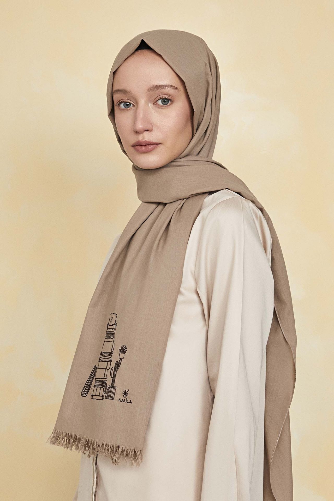 Kalila markasının özel tasarım olarak hazırladığı "Düş Peşine" Koleksiyonunun bir parçasıdır. "Düş Peşine Hayalin" kategorisinde Kariyer teması ile üretildi. Geleneksel nakış sanatını, modern ve minimal tasarımlarla yeniden yorumladık. Şal üzerine işlenen arkadaşlık temalı desenin illüstrasyonu, Kalila markasına özel olarak çizildi. Sonrasında şal üzerine ince ince nakış olarak işlendi. Şal kumaşının üretiminde %100 pamuk iplikler kullanıldı ve özel olarak dokundu. Yenilikçi üretim tekniğiyle pamuk kumaşa ipeksi görünüm ve doku verildi. Şalı elinize aldığınızda bu parlaklığı farkedecek, dokunduğunuzda ise dokusundaki pürüzsüzlüğü hissedeceksiniz. Böylece hem pamuk şalın rahatlığını yaşayacak hem de şıklığınıza şıklık katacaksınız.