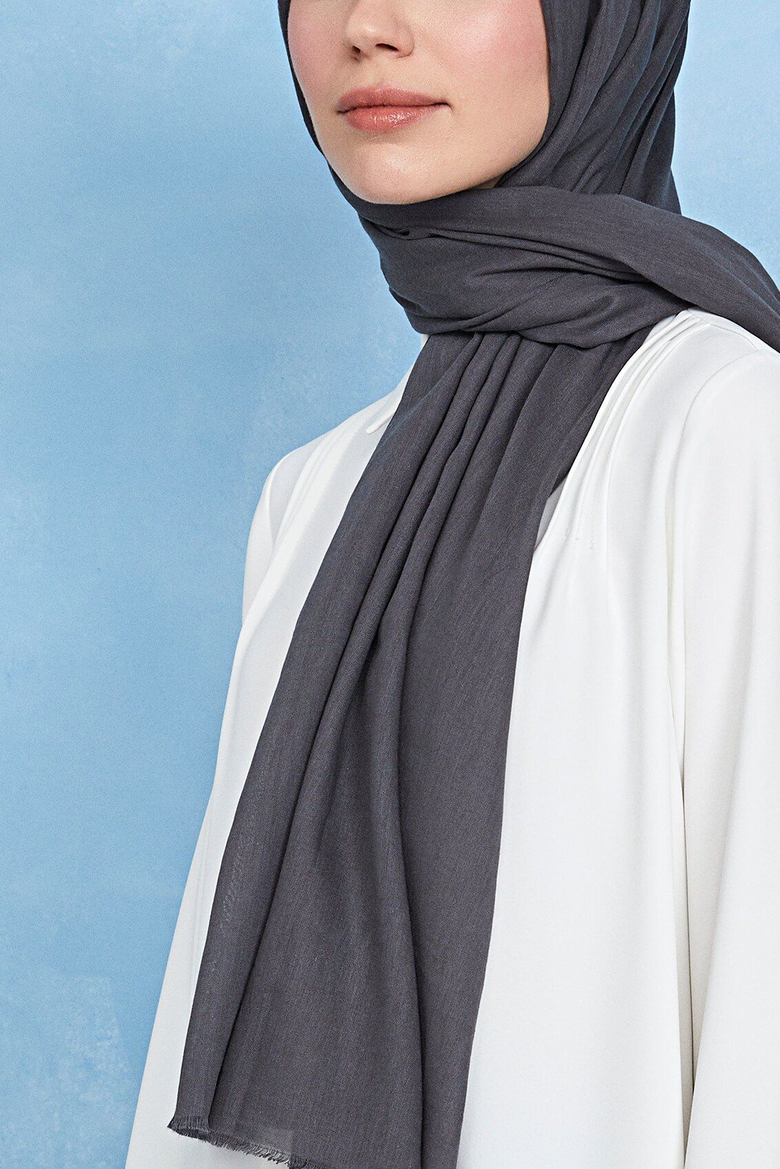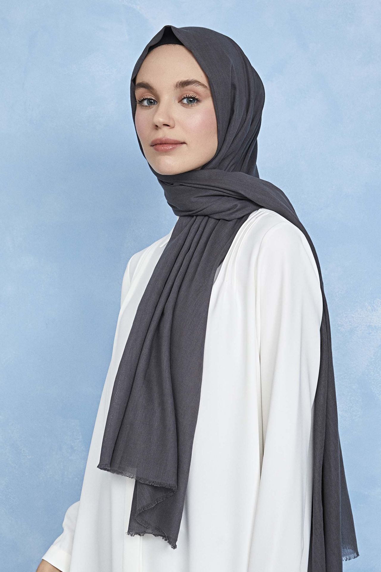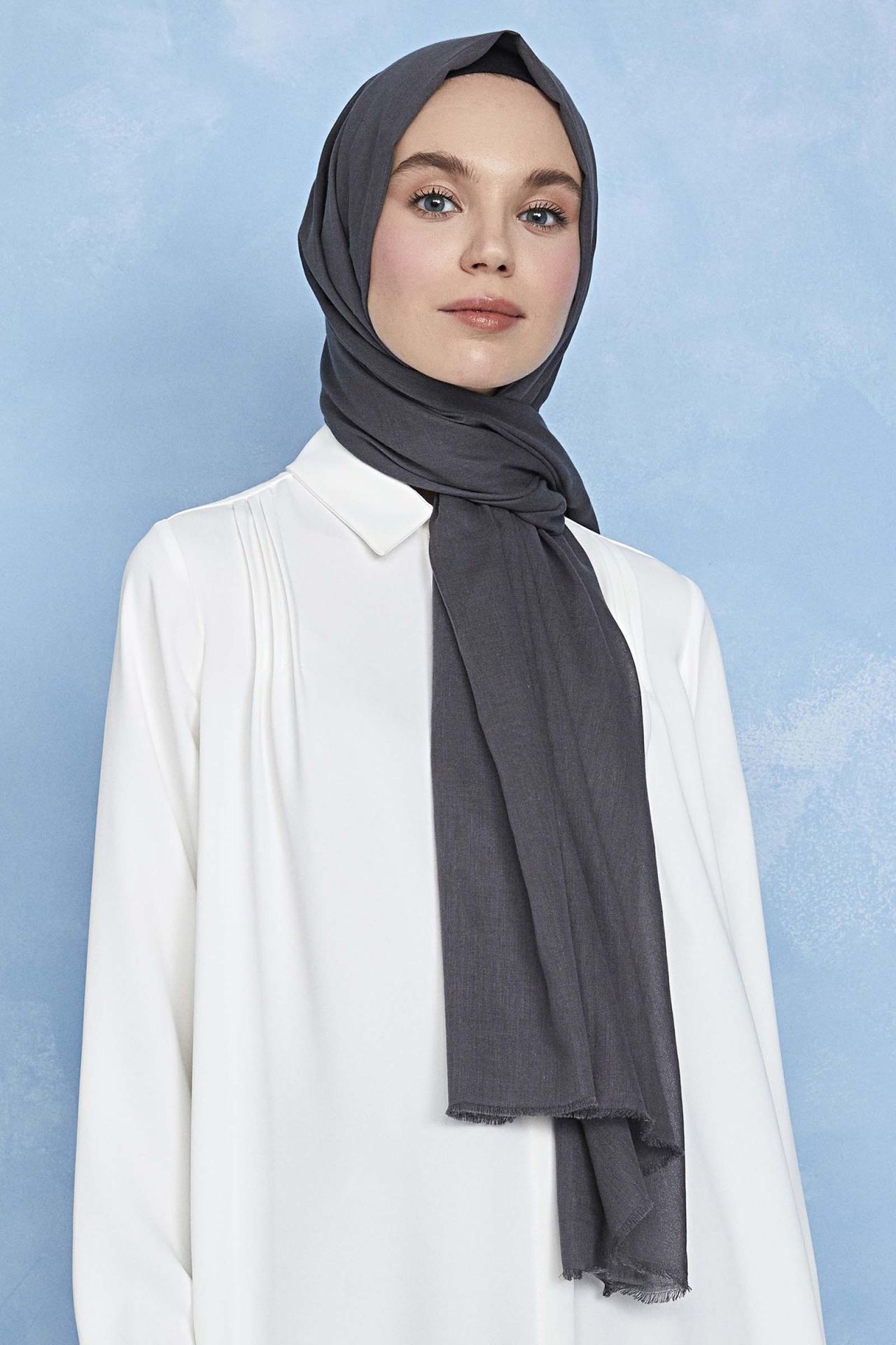 OUTLET İnce Pamuk Vual %100 Pamuk Şal Antrasit