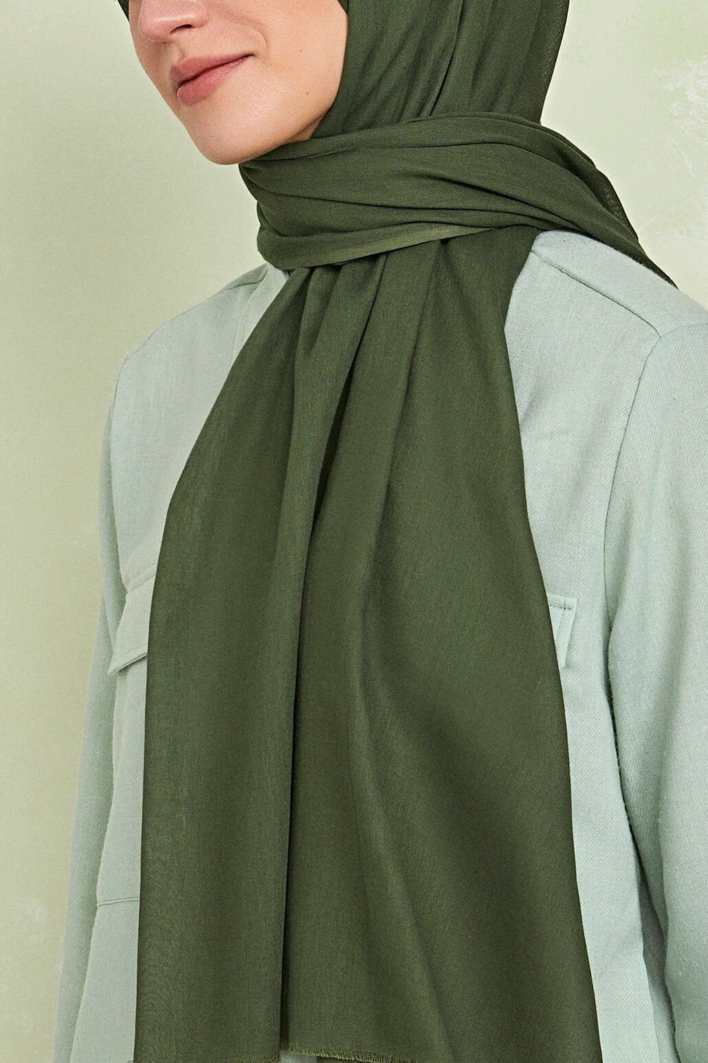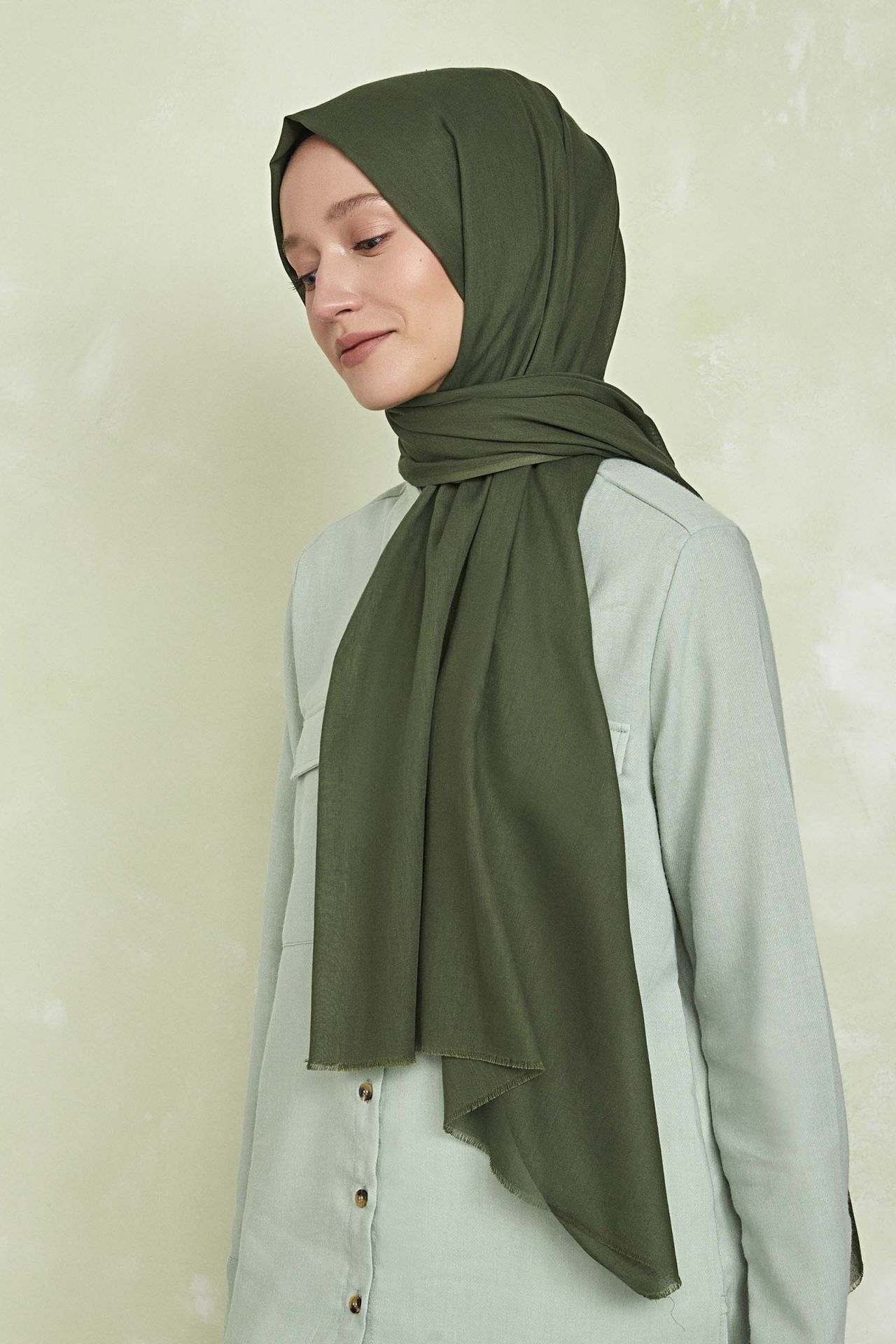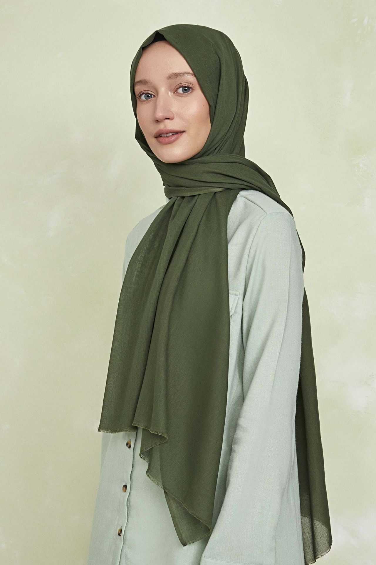 OUTLET İnce Pamuk Vual %100 Pamuk Şal Haki