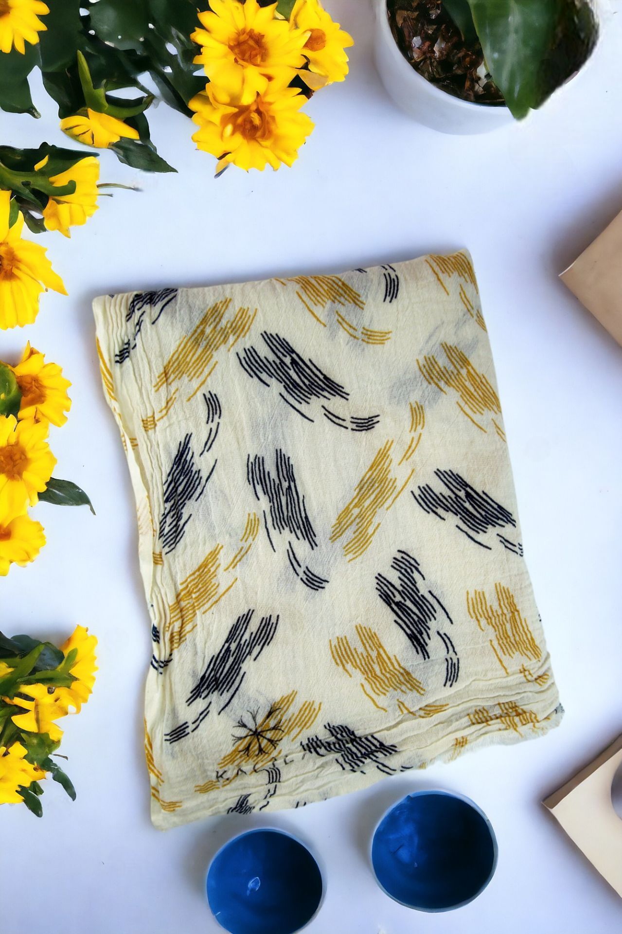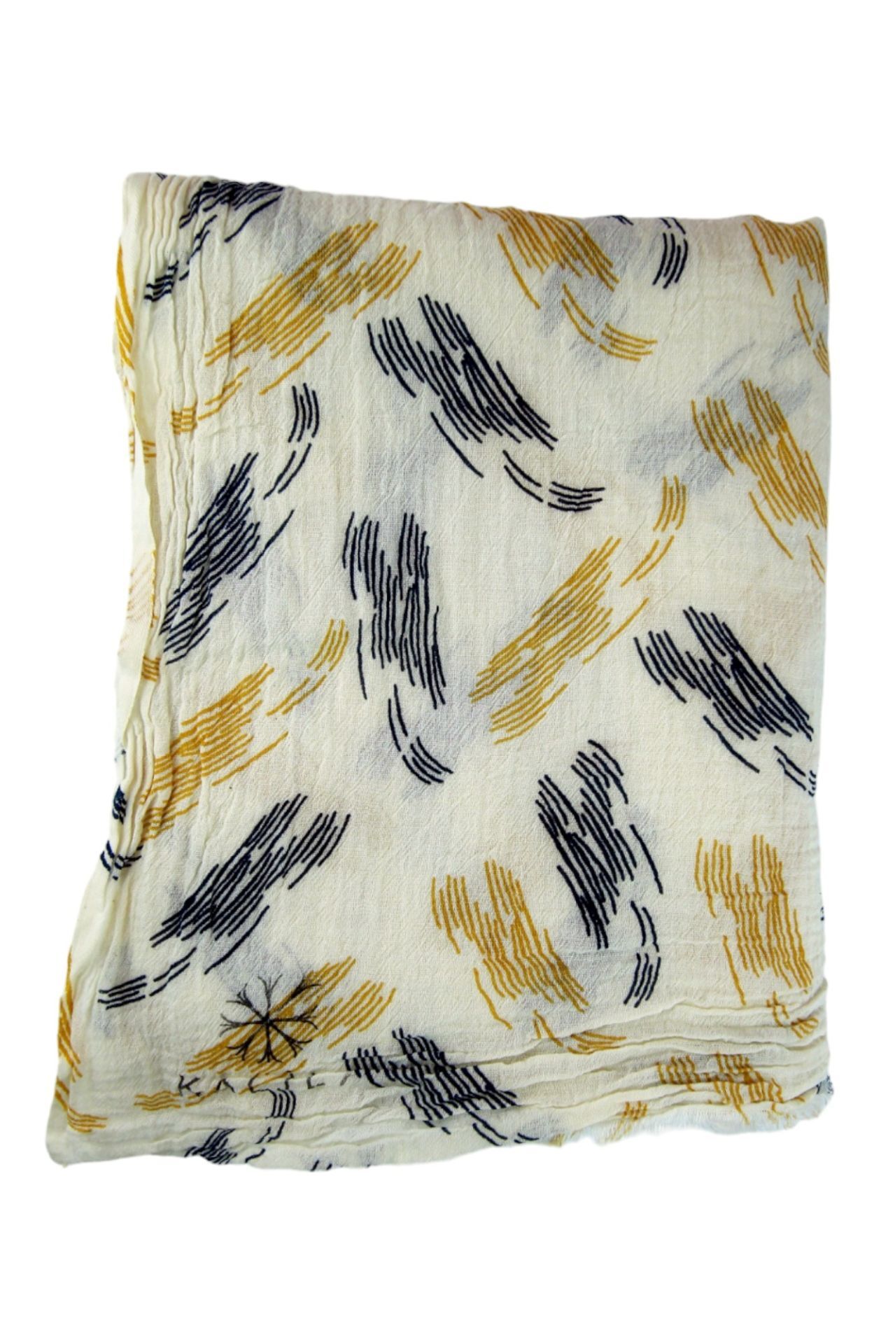 OUTLET Kalila %100 Pamuk Desenli Şal Lacivert & Hardal Sarı