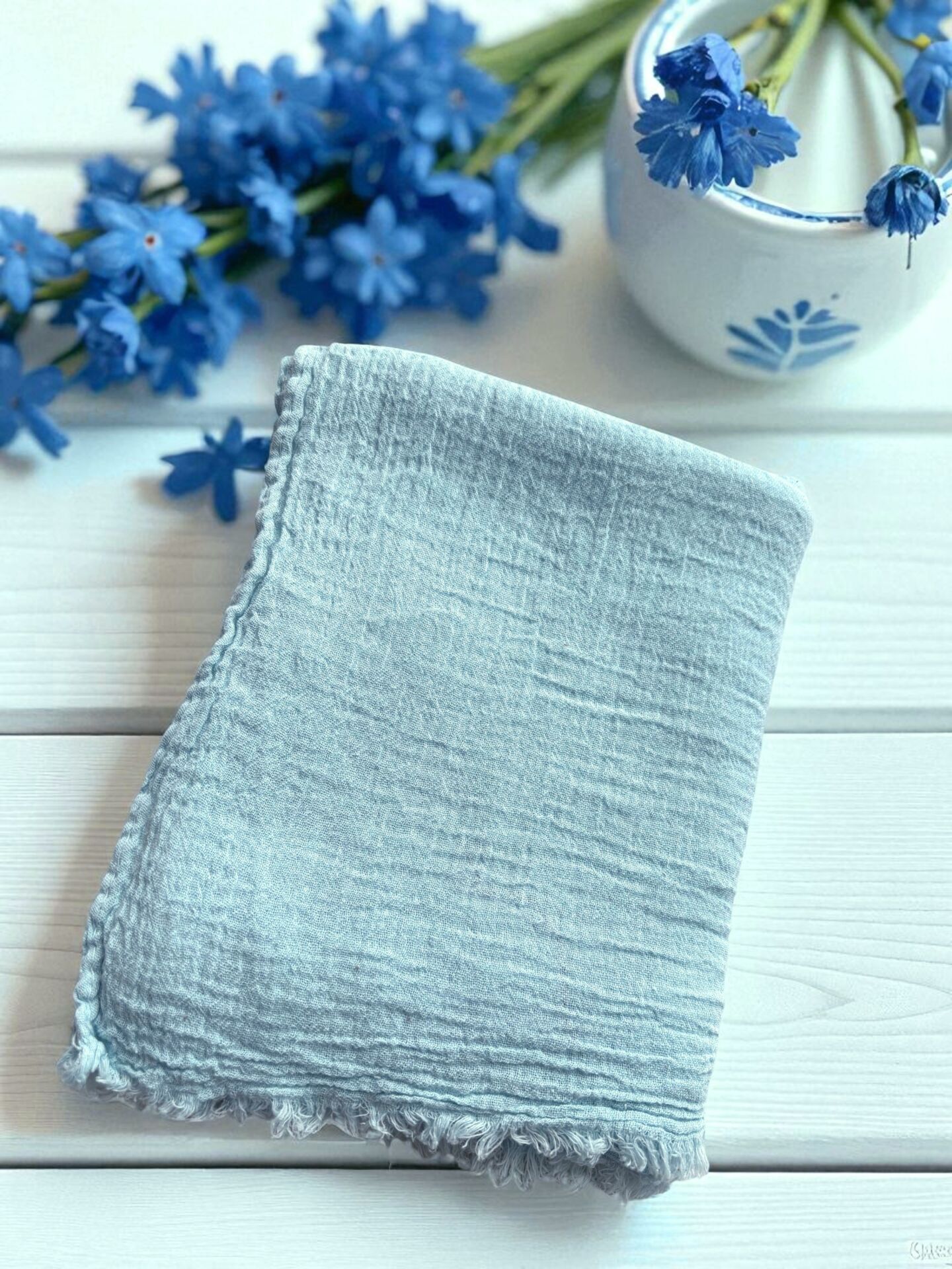 OUTLET Naura Saf Pamuk Şal Bebek Mavi (%100 Pamuk)