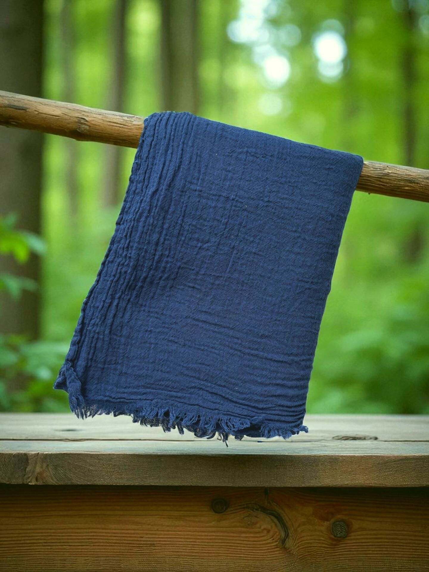 OUTLET Naura Saf Pamuk Şal Lacivert (%100 Pamuk)