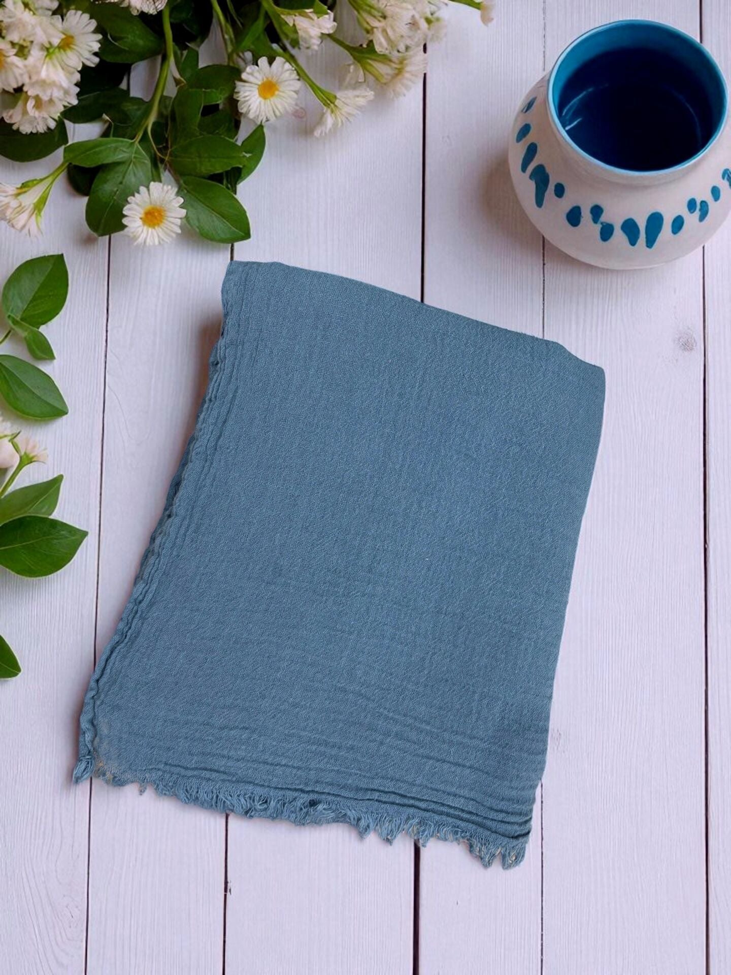 OUTLET Naura Saf Pamuk Şal Mavi (%100 Pamuk)