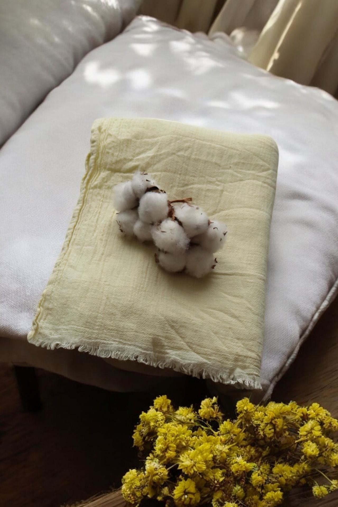 OUTLET Organik Boyalı %100 Pamuk Şal Açık Sarı
