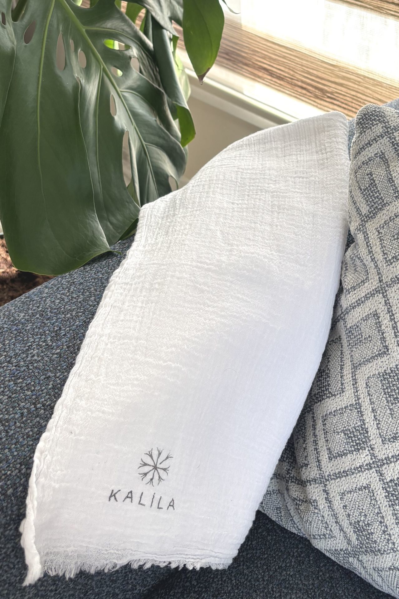 OUTLET Organik Boyalı %100 Pamuk Şal Beyaz
