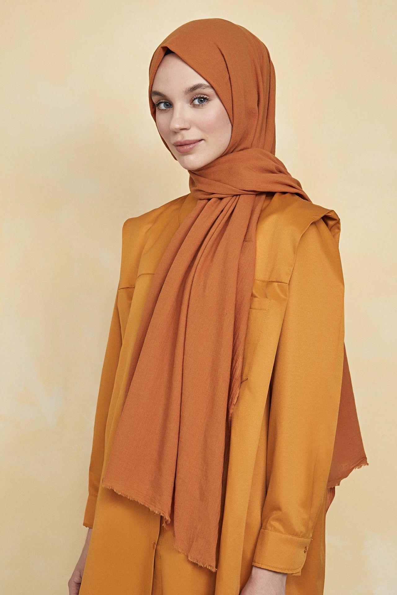 OUTLET Organik Boyalı %100 Pamuk Şal Kiremit