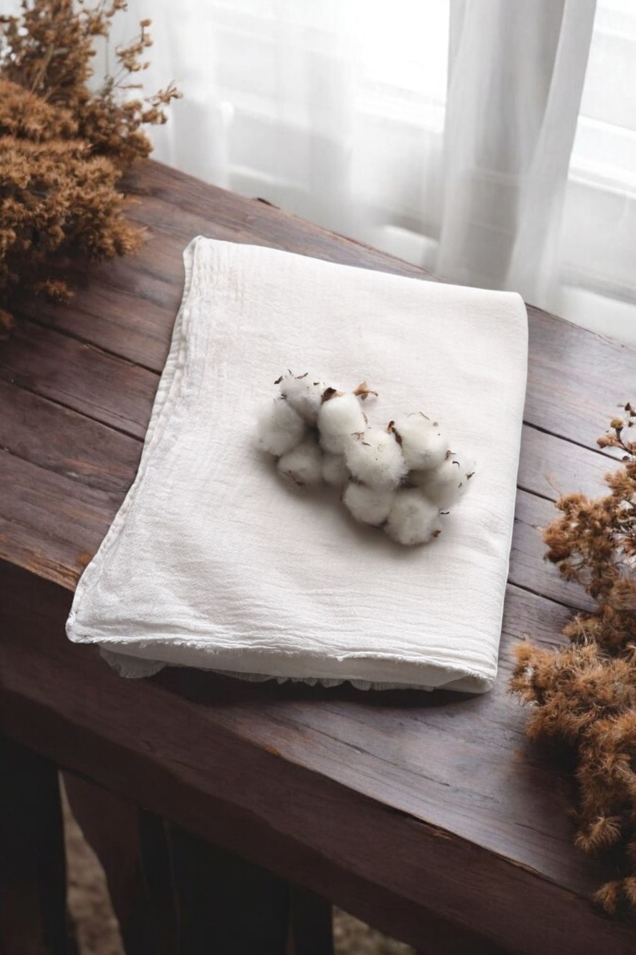 OUTLET Organik Boyalı %100 Pamuk Şal Kırık Beyaz