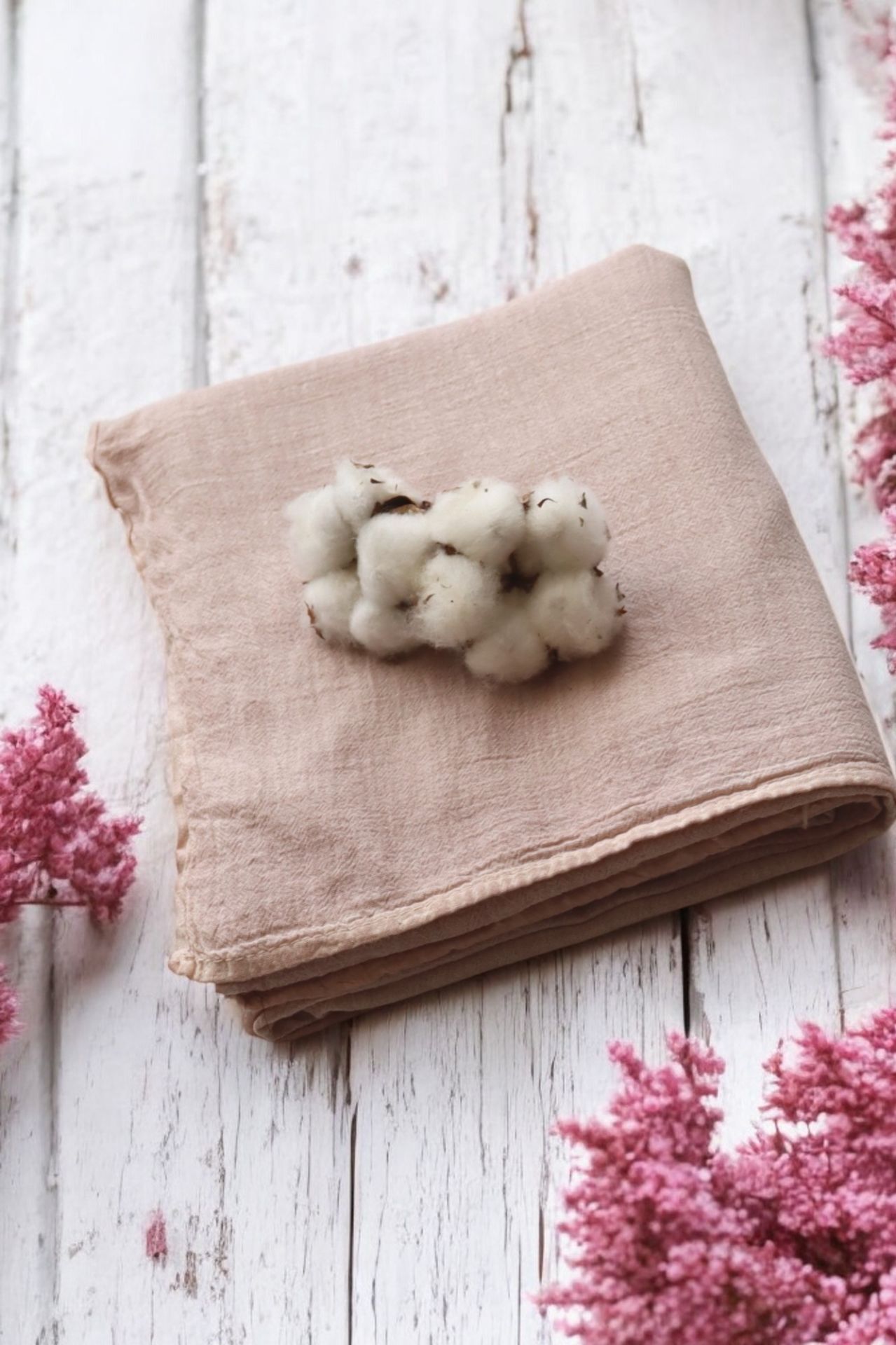 OUTLET Organik Boyalı %100 Pamuk Şal Taşlanmış Pudra